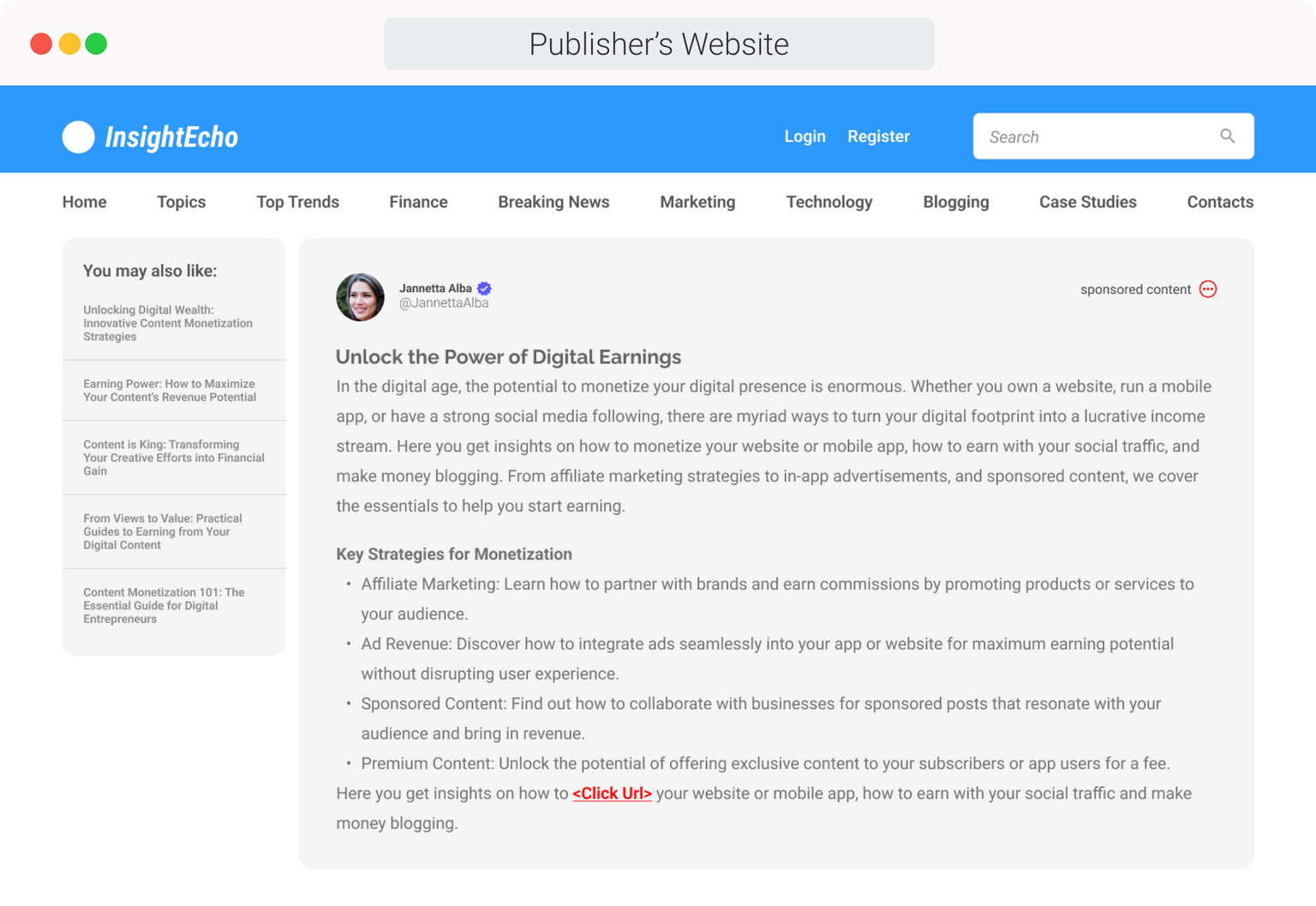 Use the switcher below to explore ad formats for advertisers and publishers. You can check both mobile and desktop ad demos.